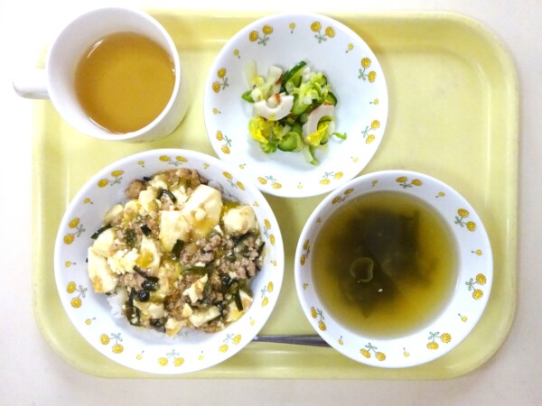 麻婆豆腐丼、白菜の甘酢和え、わかめスープ・・・503kcal わかめにはマグネシウムも豊富に含まれています。血管を拡張させ血圧を下げる効果や、骨においてもマグネシウムが合わさることで柔軟性が加わり、しなやかで丈夫な骨にな … “麻婆豆腐丼” の続きを読む