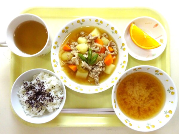 ゆかりごはん、肉じゃが、味噌汁、オレンジ・・・559kcal いんげんに含まれるビタミンKは、骨の健康維持に関わる栄養素です。ビタミンKは油に溶けやすい脂溶性ビタミンで、骨に存在するたんぱく質のオステオカルシンを活性化し … “肉じゃが” の続きを読む
