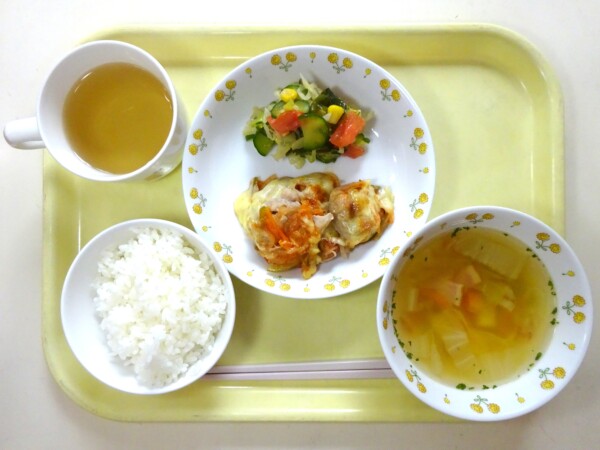 ごはん、鶏のチーズ焼き、醤油フレンチ、さつまいものスープ・・・527kcal わかめに含まれているマグネシウムは骨の成分として重要な栄養素で、体内にあるマグネシウムの6~7割は骨に含まれています。骨や歯にカルシウムが行き … “鶏のチーズ焼き” の続きを読む