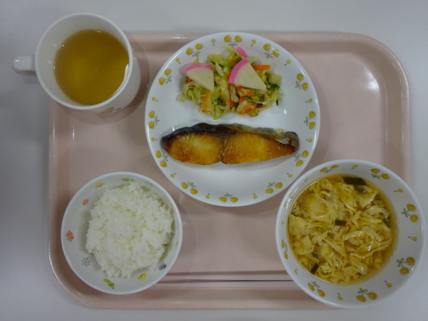 ごはん、かきたま汁、鰆の西京焼き、千草和え・・・376kcal