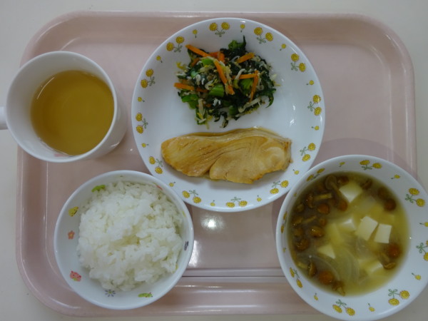 ごはん、味噌汁、煮魚、ごまじゃこ和え・・・297kcal