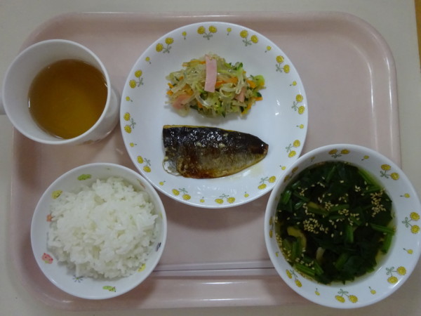 ごはん、お吸い物、秋刀魚の蒲焼き、ところてんの酢の物・・・312kcal