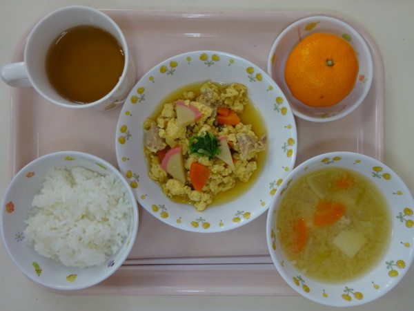 ごはん、里芋汁、親子煮、みかん・・・368kcal
