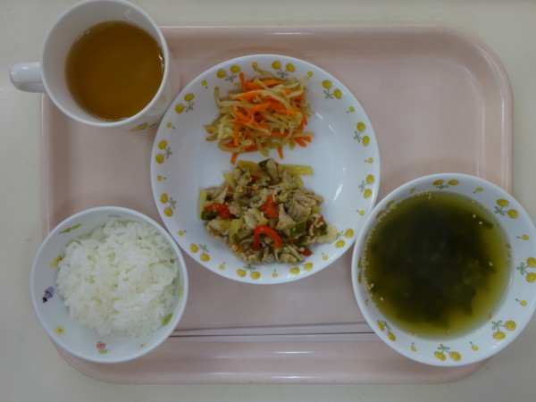 ごはん、わかめスープ、チンジャオロース、もやしのナムル・・・313kcal