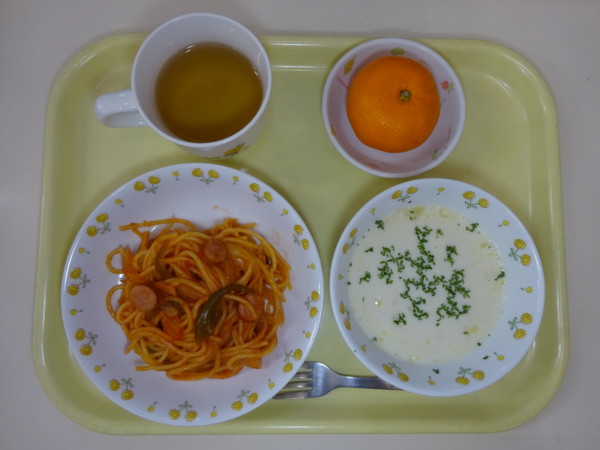 ナポリタン、コーンクリームスープ、みかん・・・376kcal