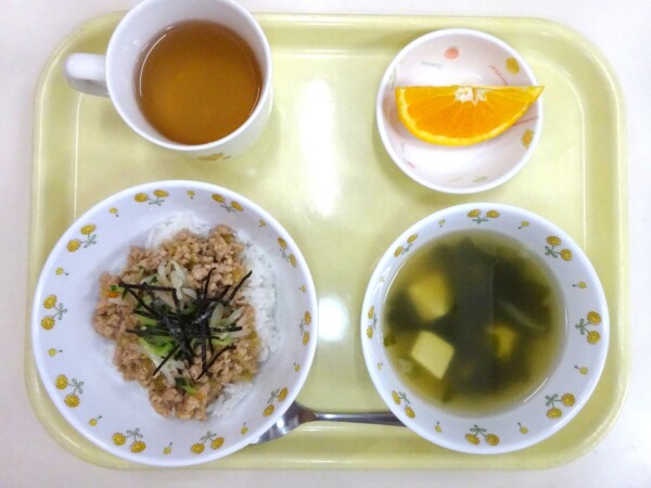 ジャージャー丼、わかめスープ、オレンジ・・・401kcal
