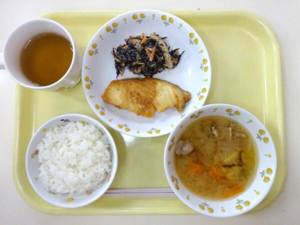 ごはん、さつま汁、煮魚、ひじきの胡麻マヨネーズ和え・・・408kcal