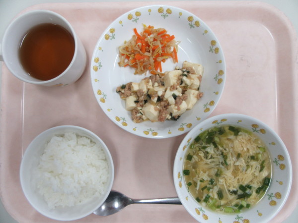 ごはん、かきたま汁、麻婆豆腐、もやしのナムル・・・382kcal