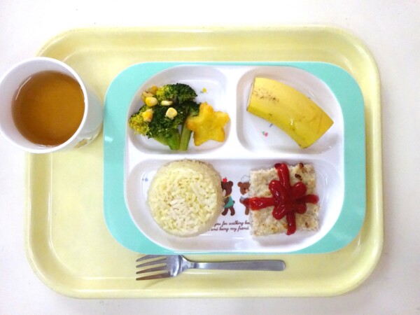 コンソメごはん、ハンバーグ、ブロッコリー和え、ポテト、バナナ・・・433kcal
