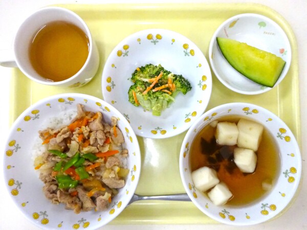 味噌豚丼、お吸い物、ブロッコリー和え、メロン・・・352kcal