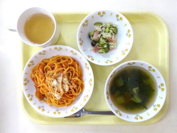 ナポリタン、チンゲン菜とコーンのスープ、グリーンサラダ・・・330kcal