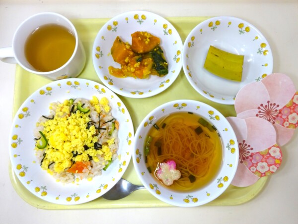 ちらし寿司、かぼちゃのそぼろ煮、お吸い物、バナナ・・・463kcal