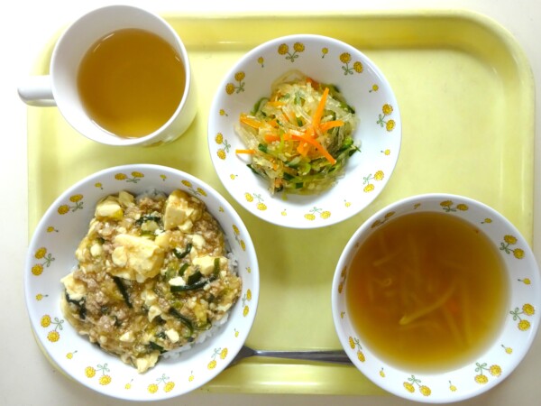 麻婆豆腐丼、春雨サラダ、中華スープ・・・469kcal