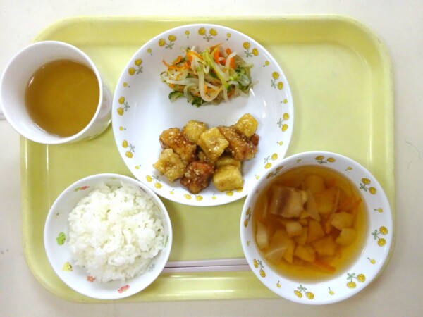 ごはん、めかじきのごま味噌和え、もやしの酢の物、お吸い物・・・568kcal