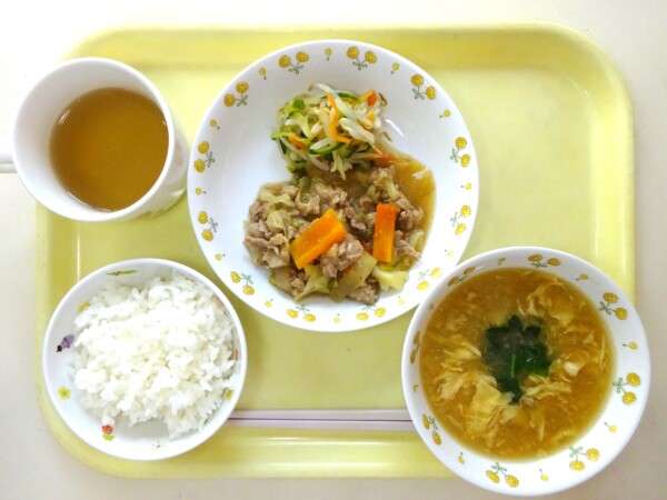 ごはん、中華風コーンスープ、回鍋肉、もやしの酢の物・・・581kcal