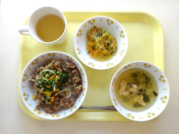 ビビンバ丼、ワンタン風スープ、春雨サラダ・・・626kcal