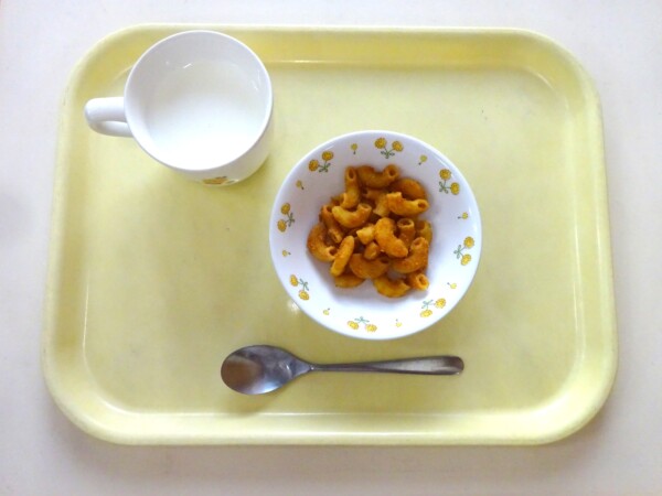 マカロニきな粉、牛乳